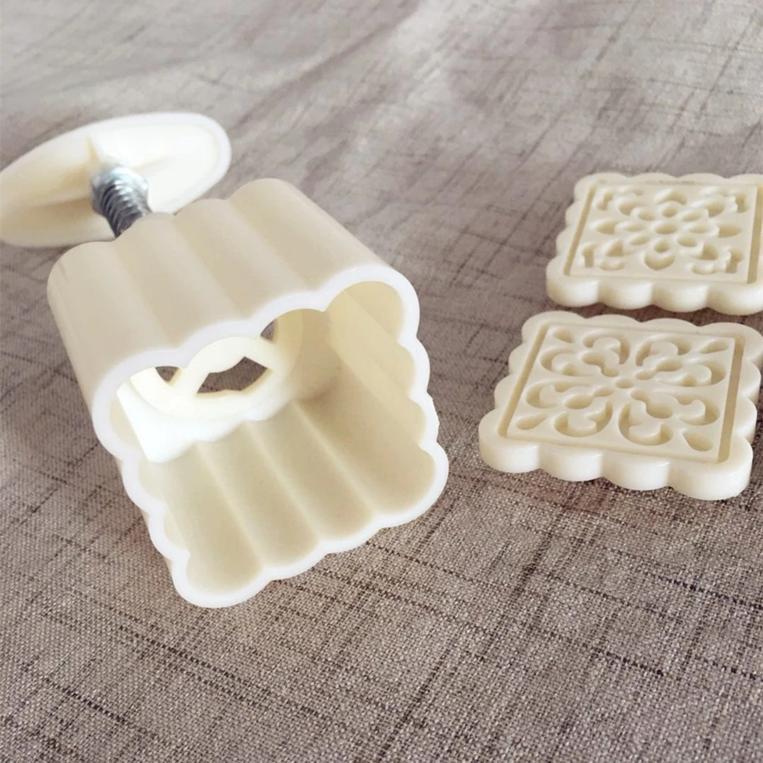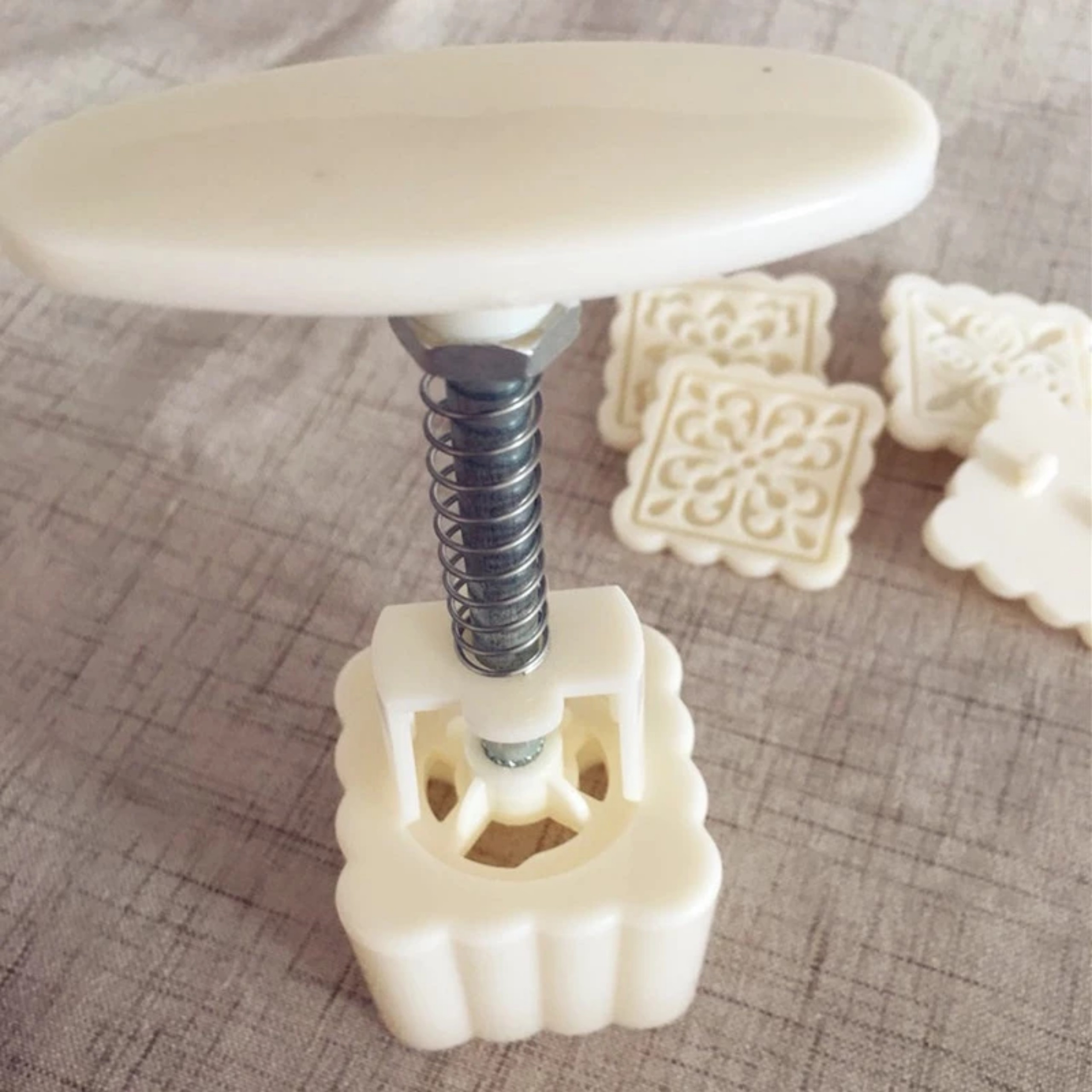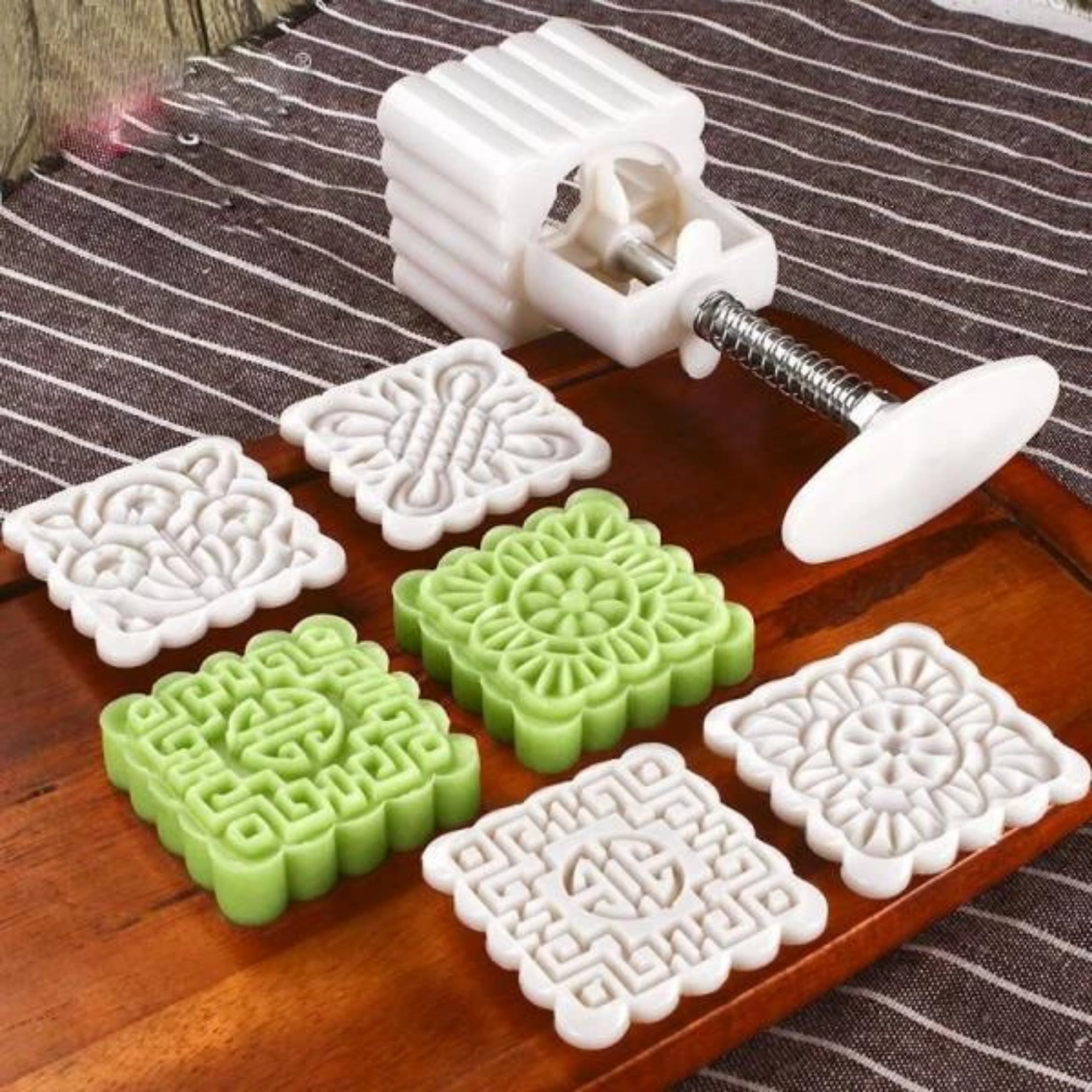 + Nhiều mẫu: Với dụng cụ bấm và các mẫu tem hoa sinh động khác nhau, bạn có thể làm ra một chiếc bánh trung thu 50g tinh tế.